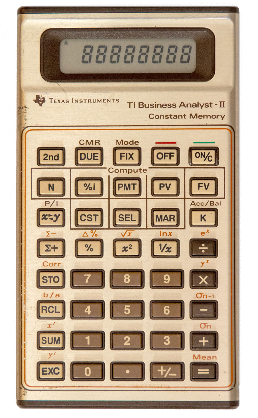 Hewlett Packard 15C (1982-1989) (Large Image) Advanced programmable scientific calculator using Reverse Polish Notation. It shares a similar design with the HP 12C financial calculator above. Both are part of the HP 10C series which included the HP 10C basic scientific calculator, HP 11C mid-range scientific calculator, HP 12C financial calculator, HP 15C advanced scientific calculator and the HP 16C computer programmer calculator. (HP 10C Series - Wikipedia.) The HP 15C was made from 1982 to 1989. It originally cost $135. That's about $315 in 2011 dollars - the price of a discount laptop computer. (For example, on the day I bought my HP 15C my local Radio Shack had a laptop computer on sale for $300.) While the HP 15C hasn't been made for over 20 years, it still has a following. Bring Back the HP 15C seeks to have HP resume production. 14,847 people in 175 countries have signed a petition stating they would buy 83,363 HP 15c calculators. (Curiously, that's an average of 5.6 calculators per person.) That site states the HP 15C is the best scientific calculator ever made by anyone for everyday use. Reasons: It uses Reverse Polish Notation (RPN) which is more efficient and natural, it was the smallest RPN calculator made by HP, the keyboard feel is very close to perfect, the landscape keyboard layout where you press keys with your two thumbs is better than a portrait layout where you press keys with one index finger, it has great battery life, the owner's manual is top notch, and it is the coolest looking calculator ever made! HP 10c Series - Wikipedia states it sells used for between $200 and $400. On the day I bought mine (July 23, 2011), one sold on eBay for $419! The range on eBay for about the past 15 days was from $92 to $600 with 25 of them sold. I bought mine at a garage sale in the San Carlos area of San Diego for $1.00! It is in good working and cosmetic condition. It was pretty dusty with some yellowing of the covering over the screen. It works fine, however. It did not come with the cover or manual. There are computer simulators at Hewlett Packard 15C - A Simulator for Windows, Linux and Mac OSX and at hp15c.com. As explained at hpmuseum.org the HP 15C supports a lot of advanced math including complex numbers, matrix math and many things beyond my comprehension! It uses three 1.5 volt LR44, S76 or similar button cell batteries which are readily available today. UPDATE: I was looking at amazon.com on 9-16-11 and noticed that HP now does sell a new edition of the HP 15c for $99. It's the same as the old one but up to 100X faster. Pretty cool - an electronic product being reintroduced after 22 years! The petition referred to above apparently worked! Congratulations. | ||||||||||||||||||||||||||||||||||||||||||||||||||||||||||||||||||||||||||||||||||||||||||||||||||||||||||||||||||||||||||||||||||||||||||||||||||||||||||||||||||||||||||||||||||||||||||||||||||||||||||||||||||||||||||||||||||||||||||||||||||||||||||||||||||||||||||||||||||||||||||||||||||||||||||||||||||||||||||||||||||||||||||
