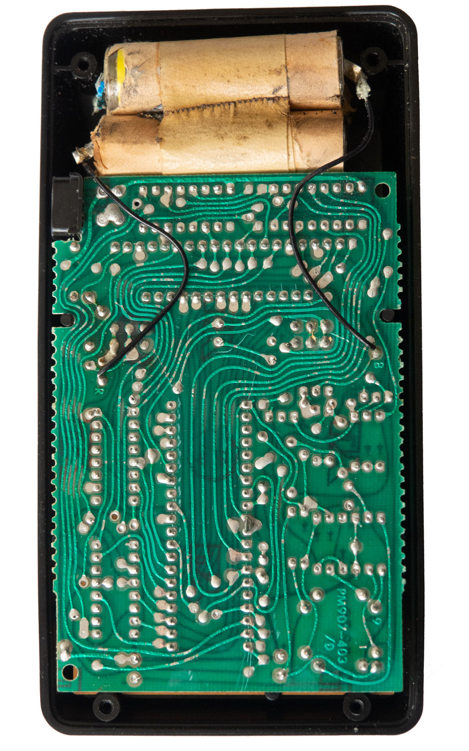 | My calculator, serial no. 94560, was a generous donation in May 2021 from a gentleman in San Francisco who has worked in Silicon Valley his entire career. The calculator came with the case, but no AC adapter. My calculator has a label on it indicating it may have originally been sold by "Holton Office Machines, 607 S. Burdick, Kalamazoo [MI] 343-4697." The calculator and case are in excellent cosmetic condition. You open the calculator by removing two screws under the "Removal Voids Warranty" sticker at the bottom of the back of the calculator. The Bowmar 901B is powered by six internal AA sized NiCad rechargeable batteries each at 1.2 volts for a total of 7.2 volts. The batteries had leaked. I removed the batteries and tested the calculator with a battery pack with two 3.7 volt batteries from a robot project. The calculator works perfectly. The 3.7 volt batteries are too large to fit in the calculator. For a more permanent fix, I bought a "7.2V 2400mAh Ni-MH AA Rechargeable Battery Pack with SM-2P 2Pin Plug and USB Charger Cable for RC Truck Cars Vehicles" from Amazon. I soldered a "JST SM 2-Pins 2P Male Plug Connector Wire Cable" to the positive and negative wires in the calculator that had been attached to the original battery pack. I also shrank wrapped the connections. The new battery pack is basically the same size as the orginal NiCd battery pack and is held in the calculator with the original plastic frame for the battery pack. The calculator works like new now. When the new battery pack is discharged, I can open the calculator back, unplug the connector and charge the battery pack with the USB charger it came with. I don't know if the new battery pack would work with an original Bowmar charger. | |||||||||||||||||||||||||||||||||||||||||||||||||||||||||||||||||||||||||||||||||||||||||||||||||||||||||||||||||||||||||||||||||||||||||||||||||||||||||||||||||||||||||||||||||||||||||||||||||||||||||||||||||||||||||||||||||||||||||||||||||||||||||||||||||||||||||||||||||||||||||||||||||||||||||||||||||||||||||||||||||||||||||||