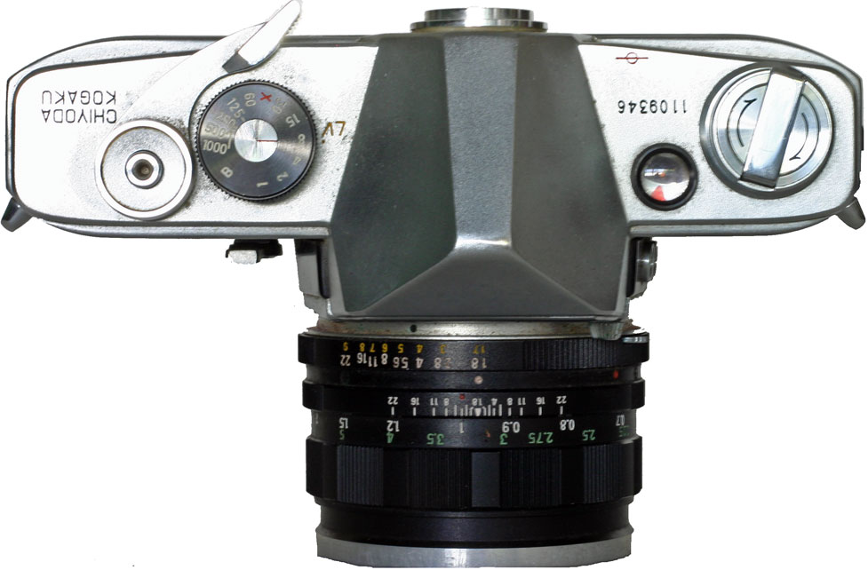 Topcon IC-1 Auto (1974-1978) (Large Image) The last of the UV lens based cameras and the only one to use a focal plane shutter. Dates are from Topcon - Camerapedia. There are actually two ranges. The original IC-1 Auto from 1974-1976 and the "new" IC-1 Auto from 1976-1978. According to the site Topcon Club the "new" model had the standard lens upgraded to the "HI TOPCOR 55mmf1.8." (Japanese site with some English.) I must have the first version since I have a 50mm f2 lens. Following the IC-1 was the Pentax K mount RM300. The earlier cameras such as the Super D (RE Super) that took an Exakta mount were considered to be higher quality than the Topcon cameras which took the UV lenses. According to a post at photo.net, the UV lens based cameras were generally more cheaply made and leaf shutters in SLR cameras tend to be unreliable. This camera appears to be very solidly made and has a focal plane shutter. You are still limited to the UV lenses. According to the post photo.net since the UV lenses were designed for a leaf shutter which does not open as wide as a focal plane shutter the apertures tend to be smaller. | ||||||