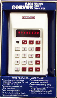 Craig Model 4501A (Large Image) Made in U.S.A. by "Bowmar/ALI, Inc., Acton, Mass 01720, for Craig Corp. Compton, Calif. 90220." It is therefore branded as a Craig, but made by Bowmar. This calculator is the same as the Bowmar 901B, the Commodore C110 and I believe the Craig Model 4501. Any version differences I believe were just cosmetic. If anyone knows otherwise, please let me know. Hereinafter, I will refer to them all as the Bowmar 901B. The Bowmar 901B, also known as the Bowmar Brain, was introduced in late 1971 or early 1972. It was one of the first pocket calculators with an LED display and the first pocket calculator made in the United States. Earlier Japanese calculators generally had green fluorescent displays or Nixie Tube displays. An exception was the Japanese red LED display Busicom LE-120A calculator, introduced in February 1971 at a cost of $395. (See VintageCalculators.com.) | Bowmar made the Bowmar 901B's red LED display, called the "Bowmar Optostic." The processor was Texas Instrument's TMS0103 "calculator on a chip." (www.datamath.org.) The keypad used TI's Klixon buttons which had a satisfying "click" when pressed. (See The Consumer Electronics Hall of Fame: Bowmar 901B, IEEE Spectrum.) The original cost was $240. $240 in 1972 has the buying power of $1,560 as I write this in May 2021! (Inflation was particularly high from 1973 through 1981.) Calculator prices fell dramatically, however, as competition surged. Texas Instruments introduced their own similar TI-2500 Datamath calculator on September 21, 1972 with a retail price of $149.95 and a street price below $120. (edn.com.) The Bowmar 901B price dropped to $119.95 in 1973, half the original price. (See www.calcuseum.com.) A similar function Bowmar MX-25, made in Mexico, cost $49.95 in 1974 according to a vintage magazine ad on eBay. Falling calculator prices resulted in Bowmar/ALI's bankruptcy in 1976. The parent company is still in business, however. (The Consumer Electronics Hall of Fame: Bowmar 901B- IEEE Spectrum; Bowmar.) The instruction manual is available at Datamath. The back of the calculator also has an "operating outline" explaining the basic steps. The calculator has -= and += buttons. This changes the logic somewhat from modern calculators. For example, to do 9 minus 4, you press 9, +=, 4, -=. It is sort of like Reverse Polish Notation common on HP calculators where you would go 9, enter, 4, - to get the result. Early Electronic Calculator has several internal images as well as a schematic of the Commodore C110. | ||||||||||||||||||||||||||||||||||||||||||||||||||||||||||||||||||||||||||||||||||||||||||||||||||||||||||||||||||||||||||||||||||||||||||||||||||||||||||||||||||||||||||||||||||||||||||||||||||||||||||||||||||||||||||||||||||||||||||||||||||||||||||||||||||||||||||||||||||||||||||||||||||||||||||||||||||||||||||||||||