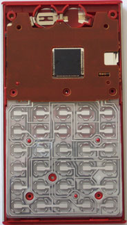 TI Speak & Spell, introduced in 1978 at a price of $50. The original version had button keys and was replaced in 1980 with a second version (see Datamath) with membrane keys. Mine is a late run of the original version with AC input (or 4 C batteries) and a headphone jack. Datamath has extensive information on the Speak & Spell under the category of "Speech Products." Be sure to follow all the links within Datamath to get the full story. Datamath also has extensive internal photos. As explained in Datamath, this toy used recently invented voice synthesization to say letters and words. It included several different types of word games. A novel use of a Speak & Spell is by ET, the Extraterrestrial, who used a modified Speak & Spell to phone home in the 1982 movie. Pretty cool since home was far away! People also modify Speak and Spells and other voice synthesizer toys to make strange sounds or music in a process called "circuit bending." Several other sites have information on this innovative toy: 99er.net, Wikipedia, Speak & Spell Emulator, another Emulator, Nostalgia, Speak N Spell. Mine was purchased on eBay in 2005 or 2006. It is in good cosmetic condition. The battery cover is missing. Originally it worked only with an AC adapter. There was some corrosion on one of the battery compartment terminals. With some Aluminum foil wedged in I finally got it working. The main game of the Speak & Spell saying a word, and then the player spelling it, does not seem to work, however. It is serial no. 5546862 and was assembled in the USA. Back removed. | |||||||||||||||||||||||||||||||||||||||||||||||||||||||||||||||||||||||||||||||||||||||||||||||||||||||||||||||||||||||||||||||||||||||||||||||||||||||||||||||||||||||||||||||||||||||||||||||||||||||||||||||||||||||||||||||||||||||||||||||||||||||||||||||||||||||||||||||||||||||||||||||||||||||||||||||||||||||||||||||||