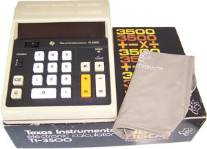 ![]() TI 5142 III, 1983 desktop calculator with printing tape and fluorescent display manufactured in Japan by Toshiba according to www.datamath.org. Purchased on March 12, 2005 at a garage sale in the San Carlos area of San Diego for $.50. In excellent working condition except for faint printout. |