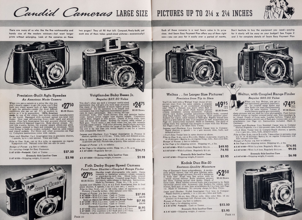 Agfa | Ansco | Argus | Beattie | Beauty | Ciroflex | Empire | Fotochrome | Fotron | Graflex | Hasselblad | Imperial | Kinax | Kodak | Kowa | Mamiya | Minolta | Omega | Pentax | Pho-Tak | Polaroid | Ricoh | Rolfix | Rollei | Soligor | Universal | Voigtlander | Yashica | Zeiss