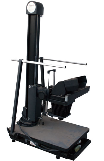 As stated at the Polaroid Support Site: "The MP4+ Multipurpose Camera System is a unique, versatile, instant photographic system which features a modular copy stand system with multiple lens, lighting, and camera head options." The manual, available at butkus.org, states: "The Polaroid MP-4 Land Camera is an unusually versatile photographic unit. Its uses in industry, education, the graphic arts, and in a vast variety of other fields are almost unlimited. They include photomicrography, photomacrography, wall chart copying, slide making, X-ray copying, small object photography, gross specimen photography, and many others." The camera can also be used with a microscope. Essentially, the system is a heavy duty copy stand with a 4x5 inch view camera mounted to it. The camera can also be removed and replaced with "Universal Camera Mount No. 44-85" which allows you to mount most cameras with a standard tripod mount. My system came with the universal camera mount. There was also a "tripod adapter 44-81" which I do not have. According to the manual, it allows "the MP-4 [to be] converted into an excellent studio camera for portraiture, large-scale copying, and many other uses which do not demand the availability of camera swings and tilts." Some sites also indicate you can use the lenses on other 4x5 view cameras, but they will not have full coverage if you use swings and tilts. There are also two arms which come out to attach lights. My system came with two Polaroid 760-SG halogen 300 watt lights. The lights plug into electrical outlets in the baseboard. In discussing the lighting, the manual states the system can provide "magnifications up to about five times life size." The camera has a 4x5 inch polaroid instant sheet film back. The view camera does not have front and back movements. There is a reflex viewing head which sits over the ground glass viewing screen. There was a fixed camera head and a sliding camera head available. With the fixed head you have to remove the film holder to view the subject and then replace the film holder to take the photo. With the sliding camera head you can view the subject and then simply slide the film holder into place. My system has the sliding film holder. The shutter is independent of the lenses. It has shutter speeds from 1/125 second to 1 second and bulb. The shutter is self cocking. It cocks as you slide the film holder into place. It has a cable shutter release. While I have not tested the speeds, the shutter appears to work. Six different lenses were offered by Polaroid. I thought I originally just had one lens - a Tominon 105mm f4.5. When I was rummaging around the drawer attached under the base of the unit, however, I found four more lenses. The other four lenses I have are: (1) Tominon 135mm f4.5, (2) Tominon 50mm f4.5, (3) Rodenstock-Eurygon 35mm f4, and (4) Rodenstock-Eurygon 35mm f4. The system and lenses are made in Japan, except the two Rodenstock lenses are made in Germany. All lenses appear to be in good shape and have front and rear caps. My system also came with two "Macro Extension No. 44-45" units that appear to be made of cast Aluminum. The extensions fit between the camera and bellows to give even more extension between the camera and lens for very high level magnification macro photographs.